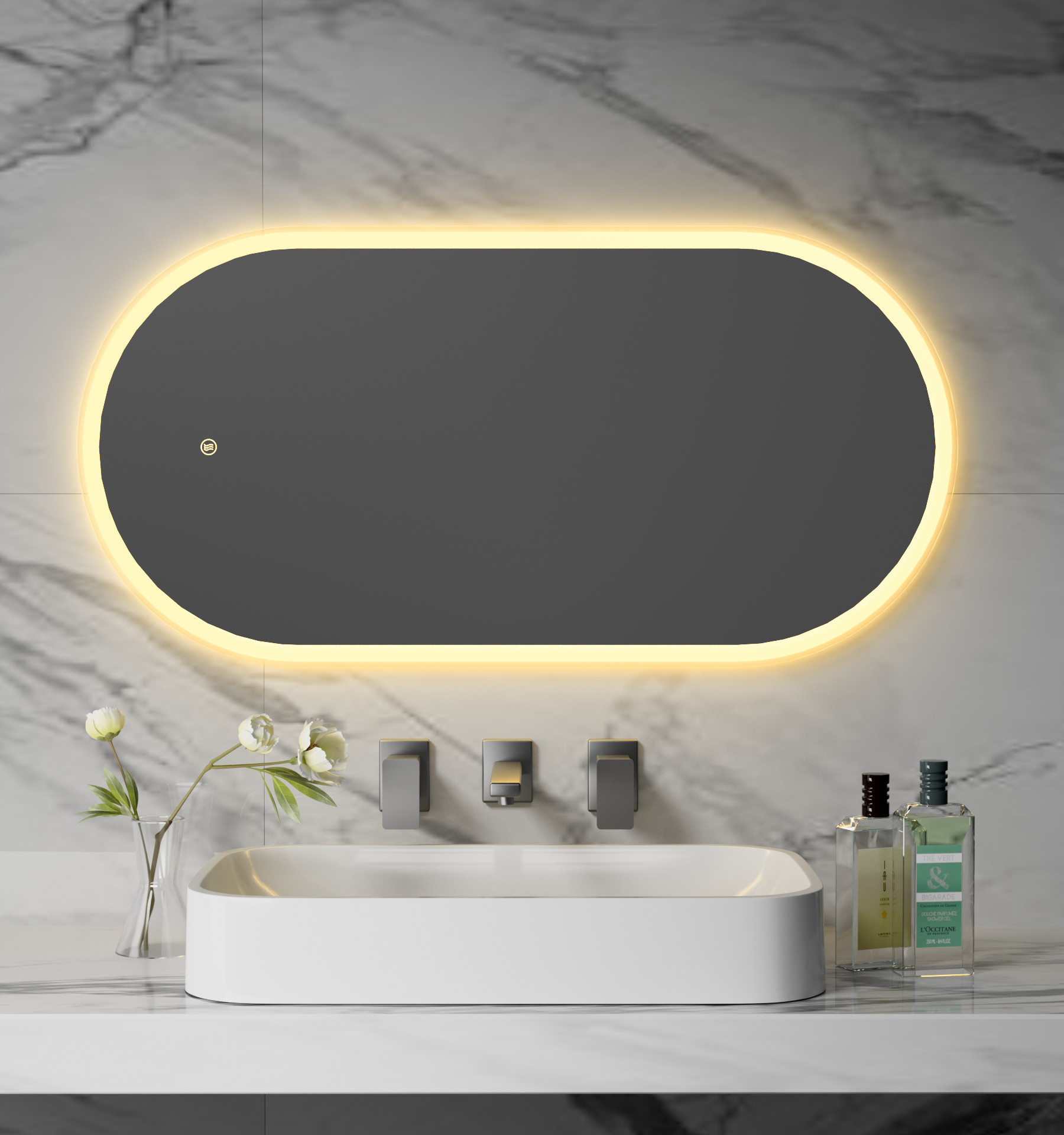 デュアルタッチコントロールスマートLEDバスルームミラー、防曇機能、無段階調光